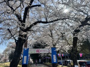 桜まつり開催中で、屋台もありレジャーシートを広げてお花見している方も…!